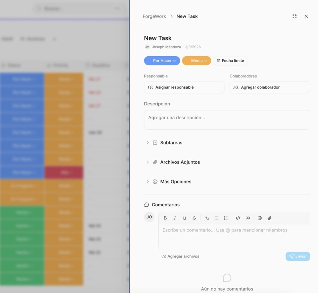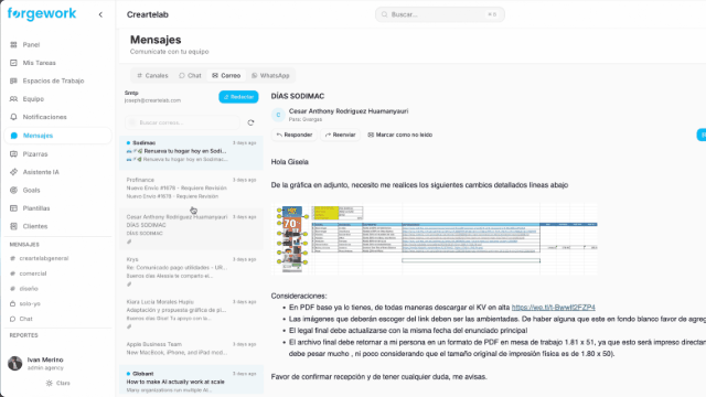 Centralizar tareas, contratos y conversaciones en ForgeWork eliminó el salto entre herramientas y aceleró la toma de decisiones operativas.